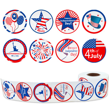 ملصق ورقي مملس مقاوم للماء ومغطى بنفسج ومطلي بالعلم الأمريكية يوم الاستقلال ملصق صندوق هدايا مزخرف ذاتي ، ملصق
